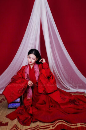 Mã thuê C74: Giao lĩnh đỏ, quây thường đỏ khoác đối khâm phượng vũ lưu vân đỏ 450.000₫