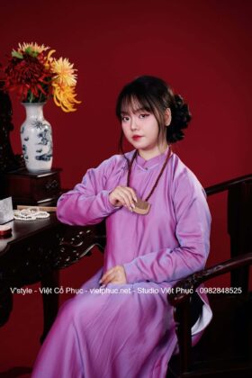Mã thuê B141: Fullset áo Ngũ thân tay chẽn lụa sắc xuân màu tím 250.000₫