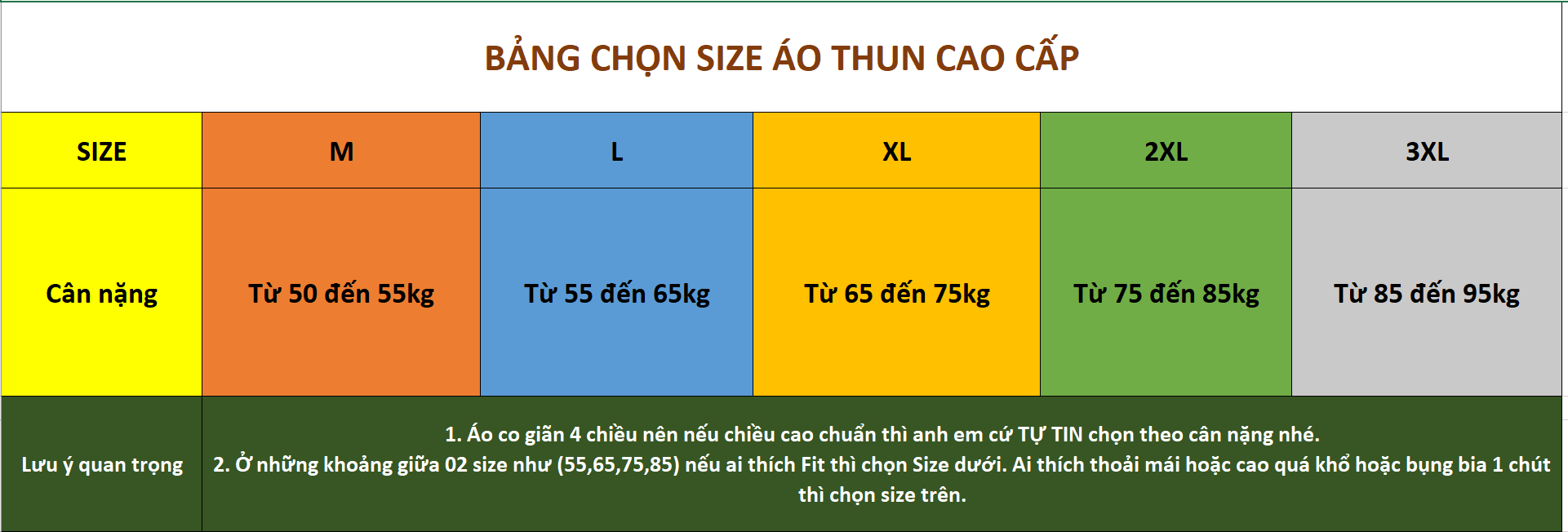 HƯỚNG DẪN CHỌN SIZE
