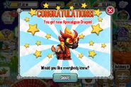 - Apocalypse Dragon was released with many other 4-element dragons and new hybrids on 25 March 2014 for 4,500