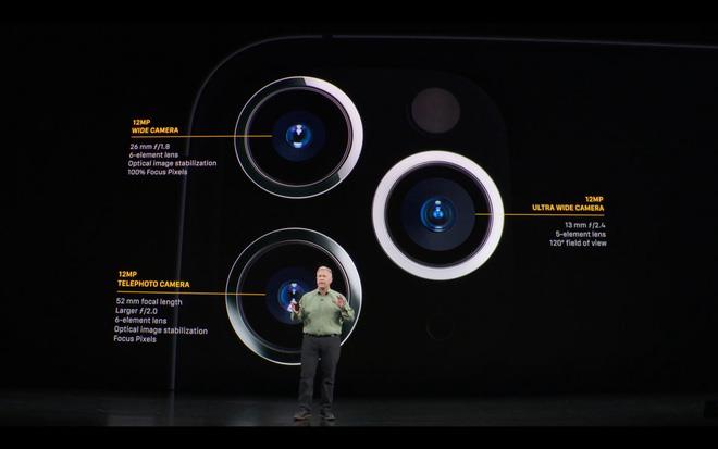 Có thể nói camera là yếu tố quan trọng nhất giúp tách biệt iPhone 11 Pro với iPhone 11. iPhone 11 Pro sở hữu cụm 3 camera (so với 2 của iPhone 11), trong đó bao gồm: