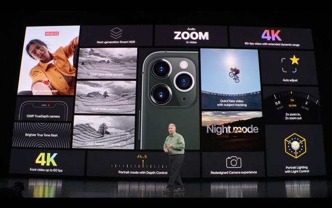 Camera selfie của iPhone 11 Pro cũng được nâng cấp với độ phân giải 12MP lớn hơn, hỗ trợ quay slow-motion và quay video 4K.