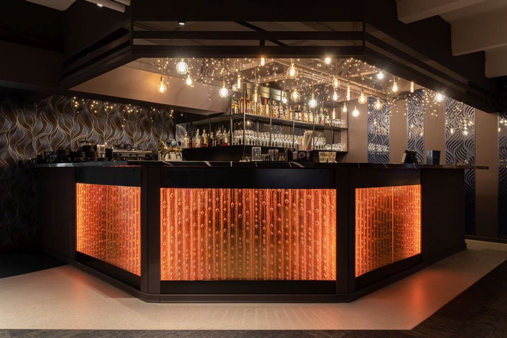 BAR COUNTERS AND DESKS We can integrate bubble panels with various liquids (for a variety of visual effects) into your bar counters or create complete bar or reception counters. The panels are only 4 cm thick. The lighting is controlled by a remote control or connected to your smart home system. Youtube RuTube