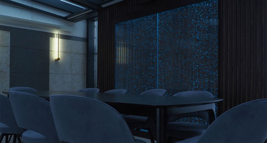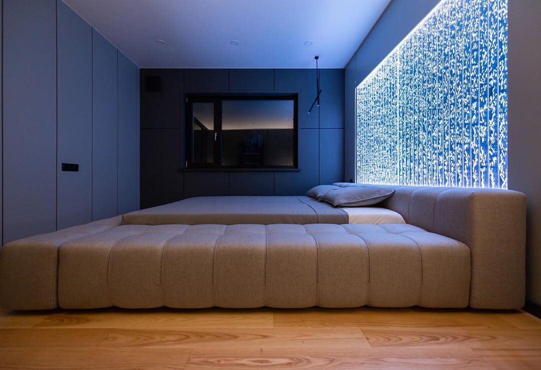 BEDROOM Built-in bubble panels with a remote compressor are so quiet that they can even be installed in the bedroom. And with smooth brightness control, you can achieve the desired effect, for example, using the panel as a subtle nightlight.