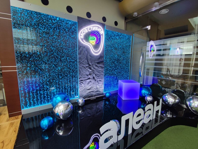 RECREATION AREA DECORATION Our products fit perfectly into the atmosphere of any relaxation area, whether it's a spa or a dental clinic. Clients will be delighted. Various fillings (affecting the speed and size of the bubbles) allow you to tailor the atmosphere to your establishment's concept. Youtube RuTube
