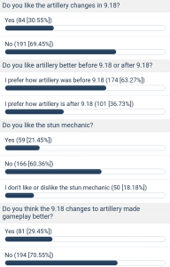 As we can see, just under 70% of all people who took the poll don’t like the artillery changes that were implemented in 9.18. We can also see that 60% of people who took the poll didn’t like the stun mechanic that was implemented, meaning that we can imply that the stun mechanic is one of the reasons these new changes aren’t widely liked by players who took this poll. Amusingly, more people want to see artillery removed than want to see it be reworked and rebalanced. This poll shows the general resentment of this latest iteration of artillery, the latest attempt by Wargaming to balance artillery and make it a more “fun and engaging gameplay mechanic”.