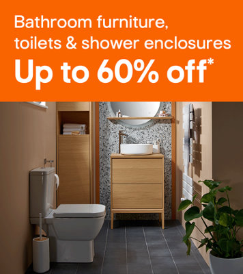 *Up to 60% off bathroom furniture, toilets & shower enclosures: Valid 23rd December - 2nd February. Excludes products sold and shipped by verified sellers on diy.com. Subject to availability. Some product available in selected stores. Prices may vary in B&Q local stores. Interest free credit minimum spend and terms and conditions apply. Delivery charges and restrictions may apply.