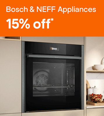 *15% off Bosch & NEFF appliances why you buy a kitchen: Offer ends 2 February 2026. Home delivery restrictions apply, charges may apply. Excludes appliances available in store to take away and products sold and shipped by verified sellers on diy.com. Save 15% off Bosch and Neff appliances when you buy a kitchen. Subject to availability. Discount applies when purchased together with a minimum of 8 kitchen cabinets and 8 kitchen doors in a single transaction.
