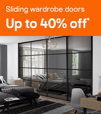 *Up to 40% off sliding wardrobe doors: Valid 23rd December - 2nd February. Excludes products sold and shipped by verified sellers on diy.com. Subject to availability. Some product available in selected stores. Prices may vary in B&Q local stores. Interest free credit minimum spend and terms and conditions apply. Delivery charges and restrictions may apply.