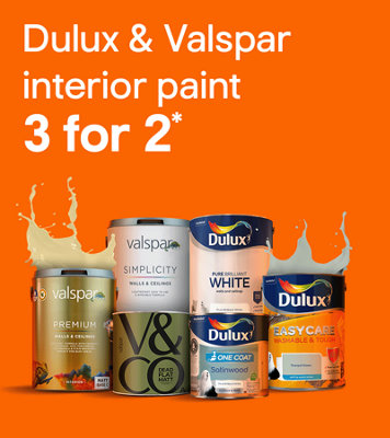 *3 for 2 on Dulux and Valspar Interior Paint: Offer ends 26th January 2026. Excludes testers, sizes of 10 litre and 12 litre paint and products sold and shipped by verified sellers on diy.com. The value of every third item per single transaction in descending price order will be deducted. Product availability and prices may vary in B&Q Local stores. Subject to availability.
