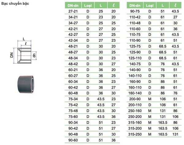 Thông số kỹ thuật Bạc CB ép phun uPVC DN280-250 PN6