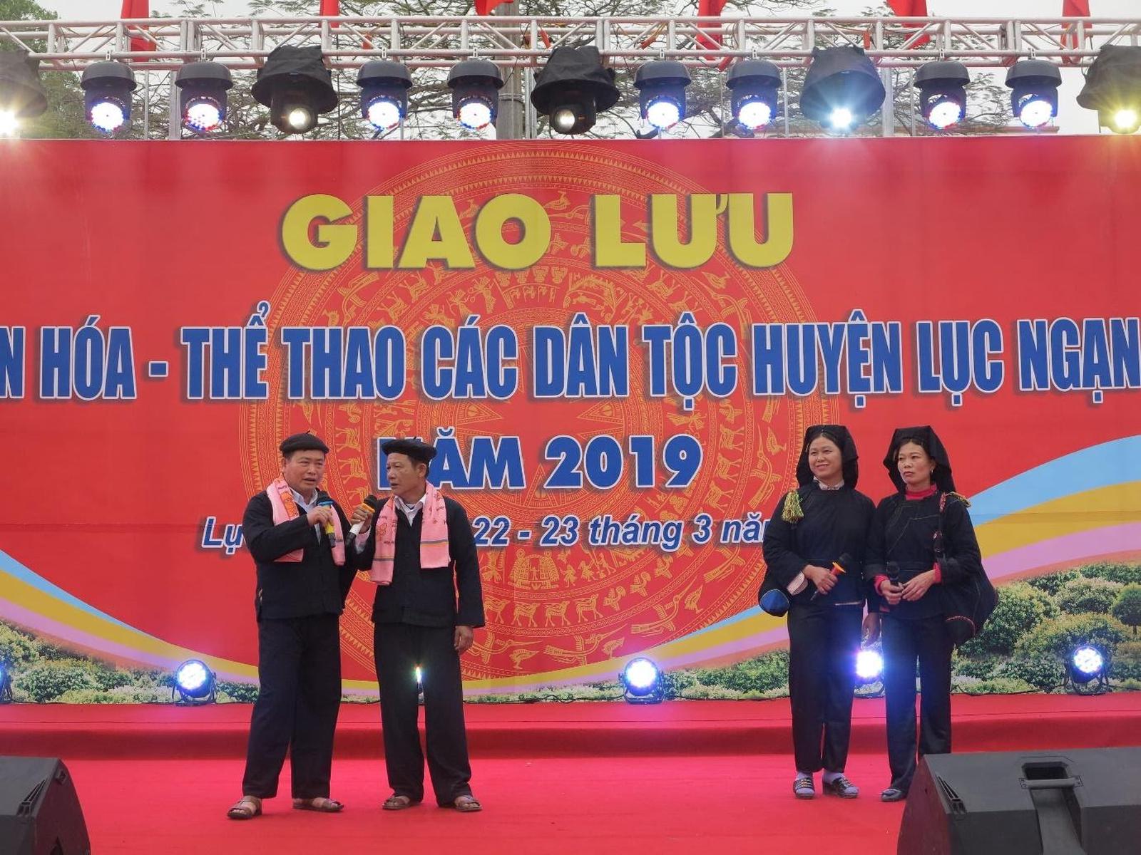 Huyện Lục Ngạn có 8 dân tộc anh em (Kinh, Tày, Nùng, Sán Chí, Sán Dìu, Hoa, Dao, Cao Lan) sinh sống đan xen, tạo nên sự giao thoa văn hoá đặc sắc. Nhiều loại hình văn hóa vật thể và phi vật thể ở đây còn được lưu giữ gần như nguyên vẹn, như: trang phục, phong tục, các làn điệu dân ca Soong hao, Sli, lượn, hát đối…