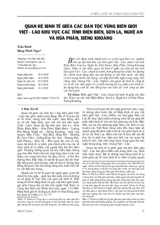 DUY TRÍ LÊdownloadDownload free PDFQuan Hệ Kinh Tế Giữa Các Dân Tộc Vùng Biên Giới Việt - Lào Khu Vực Các Tỉnh Điện Biên, Sơn La, Nghệ an Và Hủa Phăn, Xiêng Khoảng