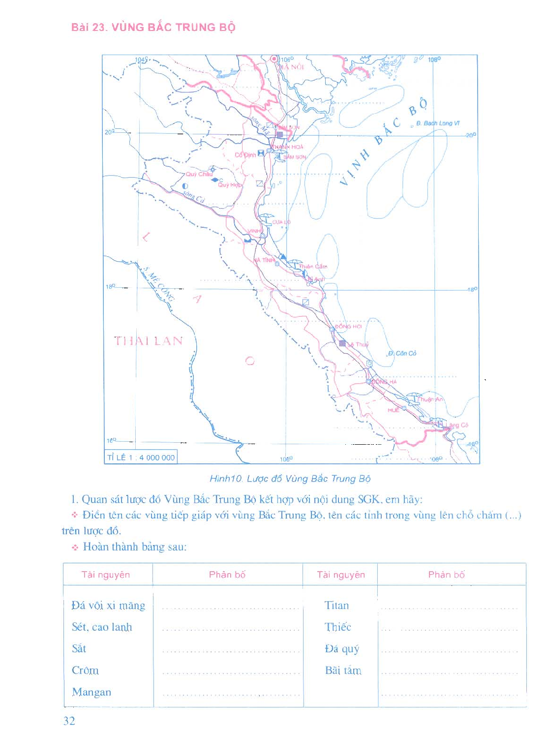 Tập Bản đồ Địa Lý Lớp 9 Bài 23 - Vùng Bắc Trung Bộ
