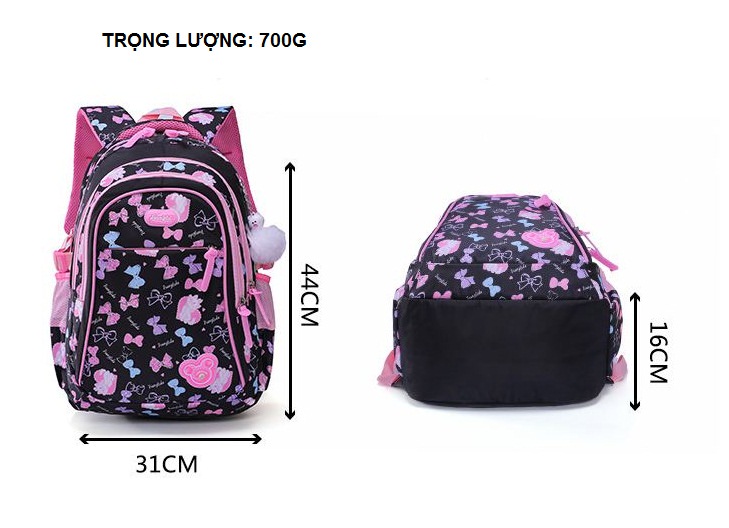 – Size balo 44 x 31 x 16 cm đựng vừa sách vở A4, phù hợp với các bé từ lớp 4 trở lên