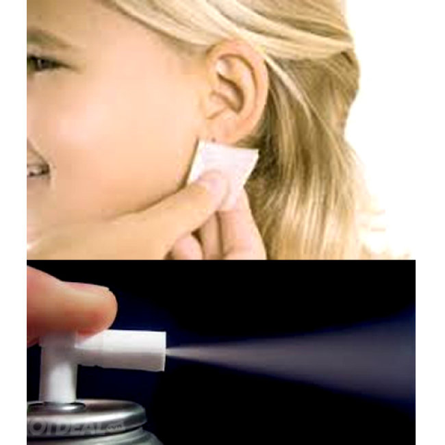 Vệ sinh vị trí bấm bằng pad skin hoặc bông cồn - Xịt và bôi thuốc tê chuyên dụng