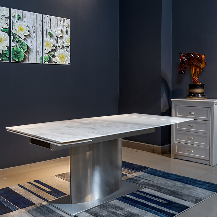 Là siêu phẩm bàn ăn đến từ hãng VIVI, chuyên các sản phẩm bàn ăn, nội thất kết hợp đá tự nhiên và kim loại đắt tiền, T809 là mẫu bàn ăn được ưa chuộng trong thời gian dài, luôn được săn đón bởi thiết kế đẳng cấp. Chất liệu kết hợp đá tự nhiên và inox 304 tạo sự sang trọng, hệ ray thông minh nhập khẩu Đức bền chắc khi thao tác cũng là yếu tố tạo nên chiếc bàn ăn đẳng cấp.