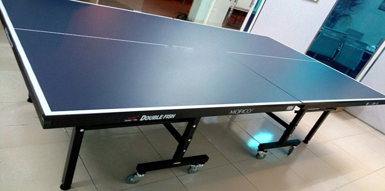 Bàn Bóng Bàn Double Fish DF 201C có thiết kế chắc chắn với tông màu xanh đen sang trọng, chất liệu gỗ MDF cao cấp với độ dày mặt bàn 18mm.