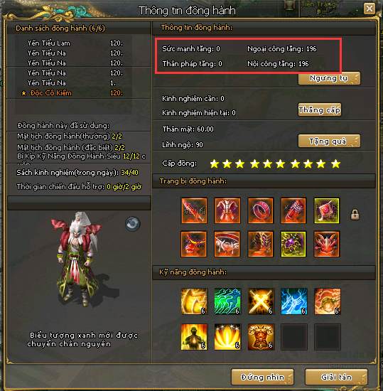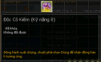 - Độc Cô Kiếm vẫn có thể sử dụng Mật Tịch Đồng Hành Cao, Mật Tịch Đồng Hành Đặc Biệt, Bí Kíp Kỹ Năng Đồng Hành Siêu.