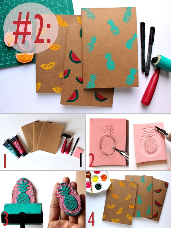 - Tương tự, bạn có thể tự khắc dấu hình quả cam, dưa hấu, in trang trí cho mặt bìa cuốn sổ thêm rực rỡ sắc màu nhé!
