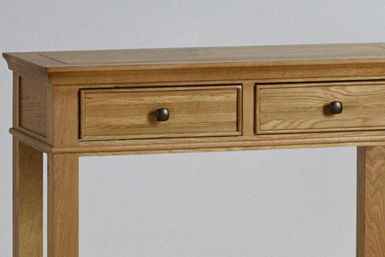 Bàn Console Holy Gỗ Sồi COZINO được thiết kế tạo phong cách trang trọng thanh lịch cho bất kỳ phòng làm việc, phòng khách hoặc phòng ngủ mang lại không gian làm việc tuyệt vời với khả năng lưu trữ thoải mái với 2 ngăn kéo tiện lợi để các vật dụng nhỏ và 1 kệ thấp để các vật dụng thường sử dụng như bình nước, sách...