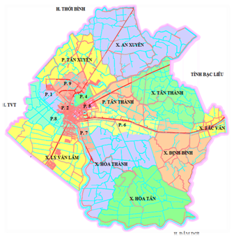 Phạm vi, tính chất lập quy hoạch tỉnh Cà Mau — Được phân chia thành 101 đơn vị hành chính cấp xã gồm có 9 thị trấn, 10 phường và 82 xã.Bản Đồ Quy Hoạch Thành Phố Cà Mau