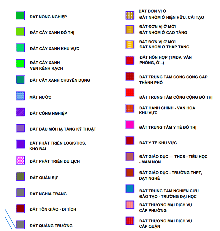 Ký hiệu các loại đất trên bản đồ quy hoạch.