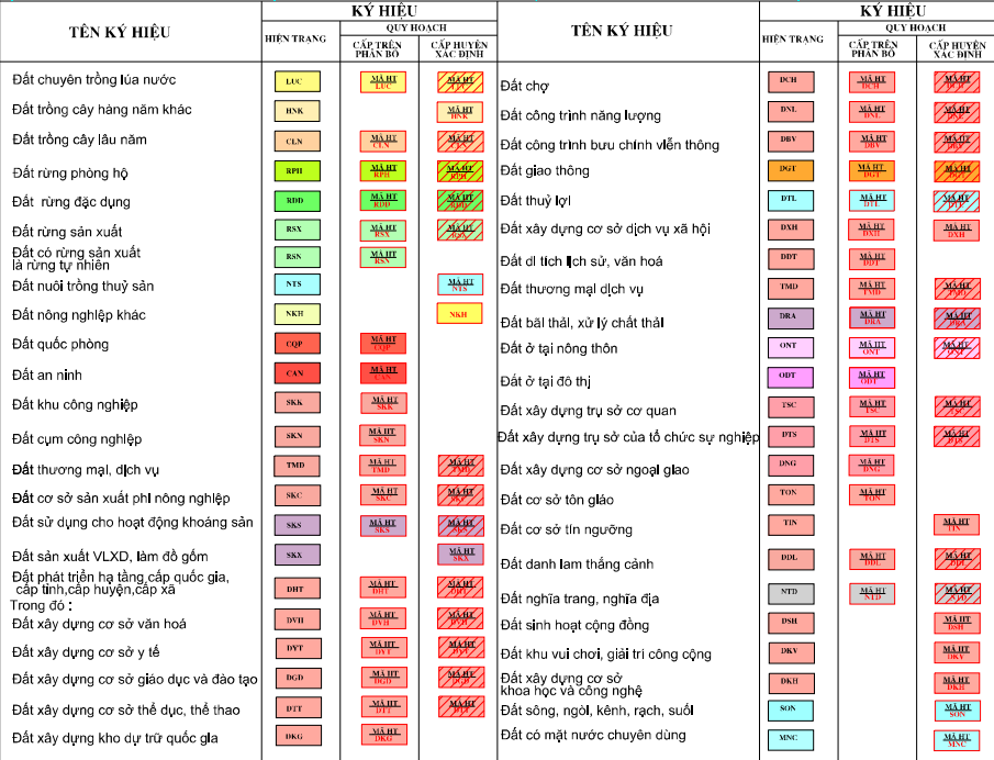 Ký hiệu các loại đất trên bản đồ quy hoạch.