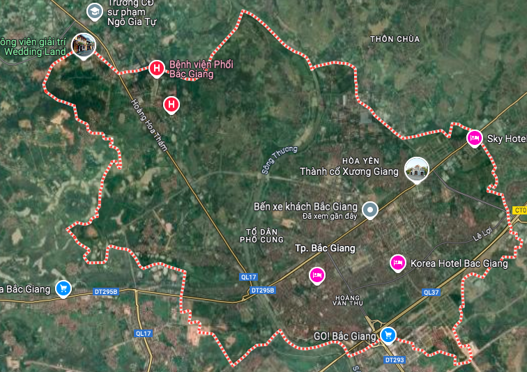 TP Bắc Giang trên bản đồ Google vệ tinh.