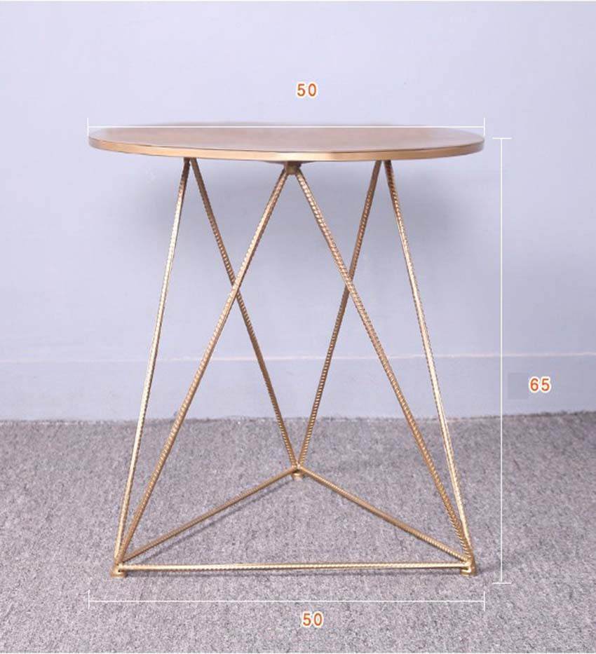 Thiết kế kiểu dáng mới lạ bằng khung sắt tạo thành các hình tam giác cân lắp ghép với nhau giữ cho mặt bàn chắc chắn, không rung lắc. Bàn tròn cafe cấu tạo từ sắt đặc mạ vàng cho màu sắc sáng bóng toát lên vẻ đẹp sang trọng, đẳng cấp thu hút mọi ánh nhìn. Mặt bàn tròn sẽ tạo cảm giác gần gũi và ấm cúng hơn cho những cuộc tụ họp hoặc hẹn hò.