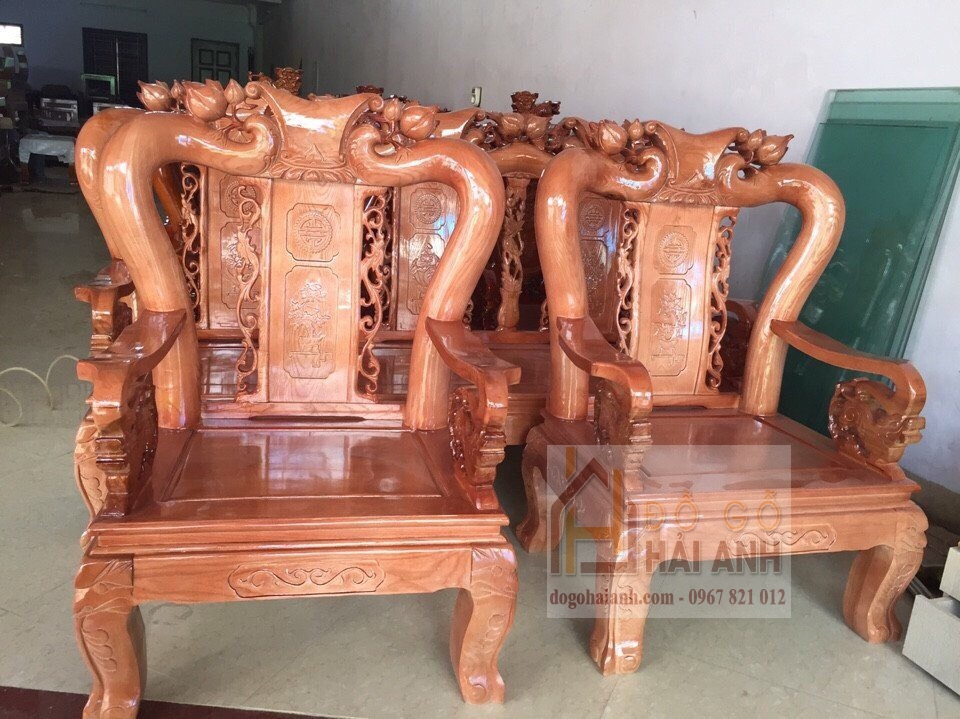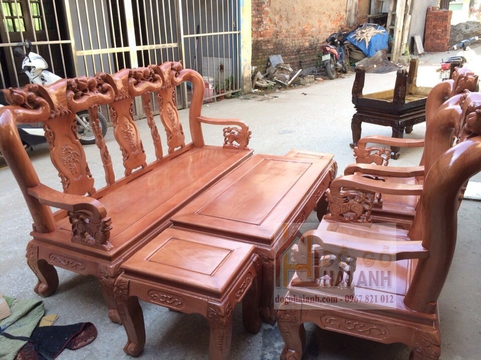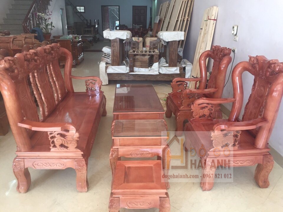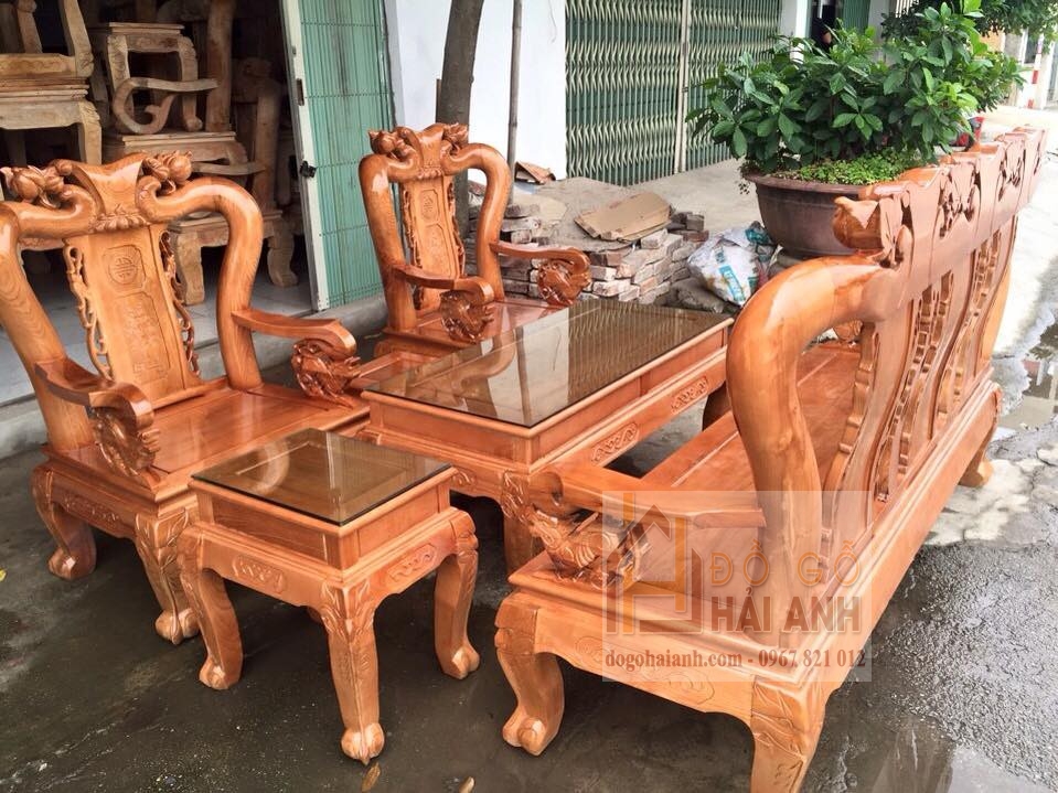 Bàn ghế phòng khách gỗ hương vàng cao cấp