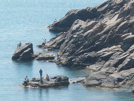 Điểm câu “thuồng luồng biển xứ trầm” mà nhóm ông Bảy cắm chốt là khu ghềnh gộp ở Bãi Tiên, trên đường Phạm Văn Đồng nối dài. Nơi đây ghềnh đá trập trùng, có những đoạn đá nhoài ra biển, đứng từ trên cao nhìn xuống trông như chiếc lưỡi đen ngòm của hà bá chực chờ nuốt chửng những con người nhỏ bé dám bạo gan chọc giận thủy thần.