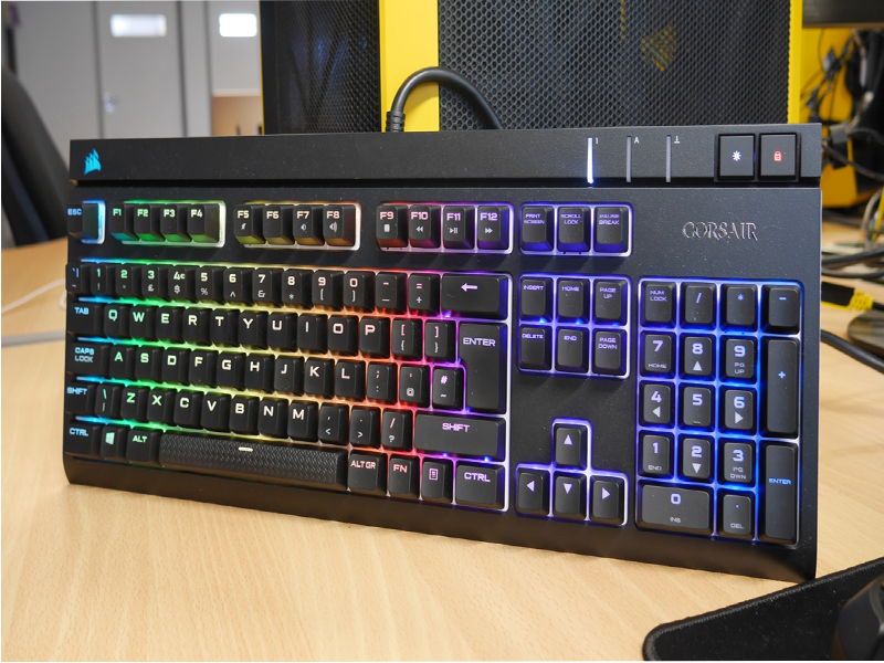 Mẫu bàn phím Corsair Strafe RGB Silent sử dụng đèn led đa màu sắc đi cùng đó có phần kê tay có thể tháo rời giúp người dùng không bị mỏi tay sau một thời gian sử dụng