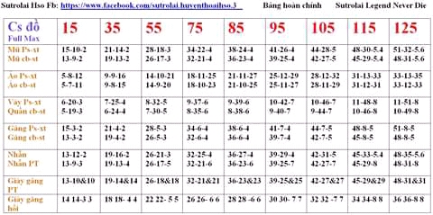 Bảng Chỉ Số Đồ Max Từng Lv - Thời Đại Hiệp Sĩ