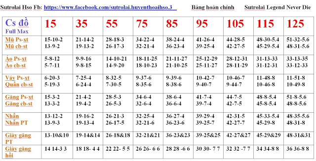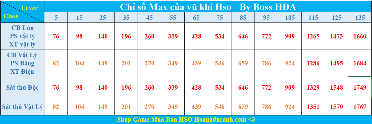 Bảng Chỉ Số đồ Max Hiệp Sĩ Online - Cách Tính Chỉ Số Cường Hóa