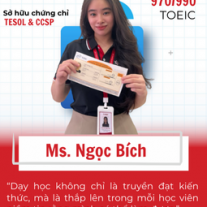 Cô luôn tin rằng việc dạy học bắt đầu từ sự lắng nghe và thấu hiểu. Mỗi khi học trò băn khoăn, cô luôn sẵn sàng giải đáp, đồng hành và tiếp sức để bạn vững tin hơn trên hành trình chinh phục tiếng Anh.