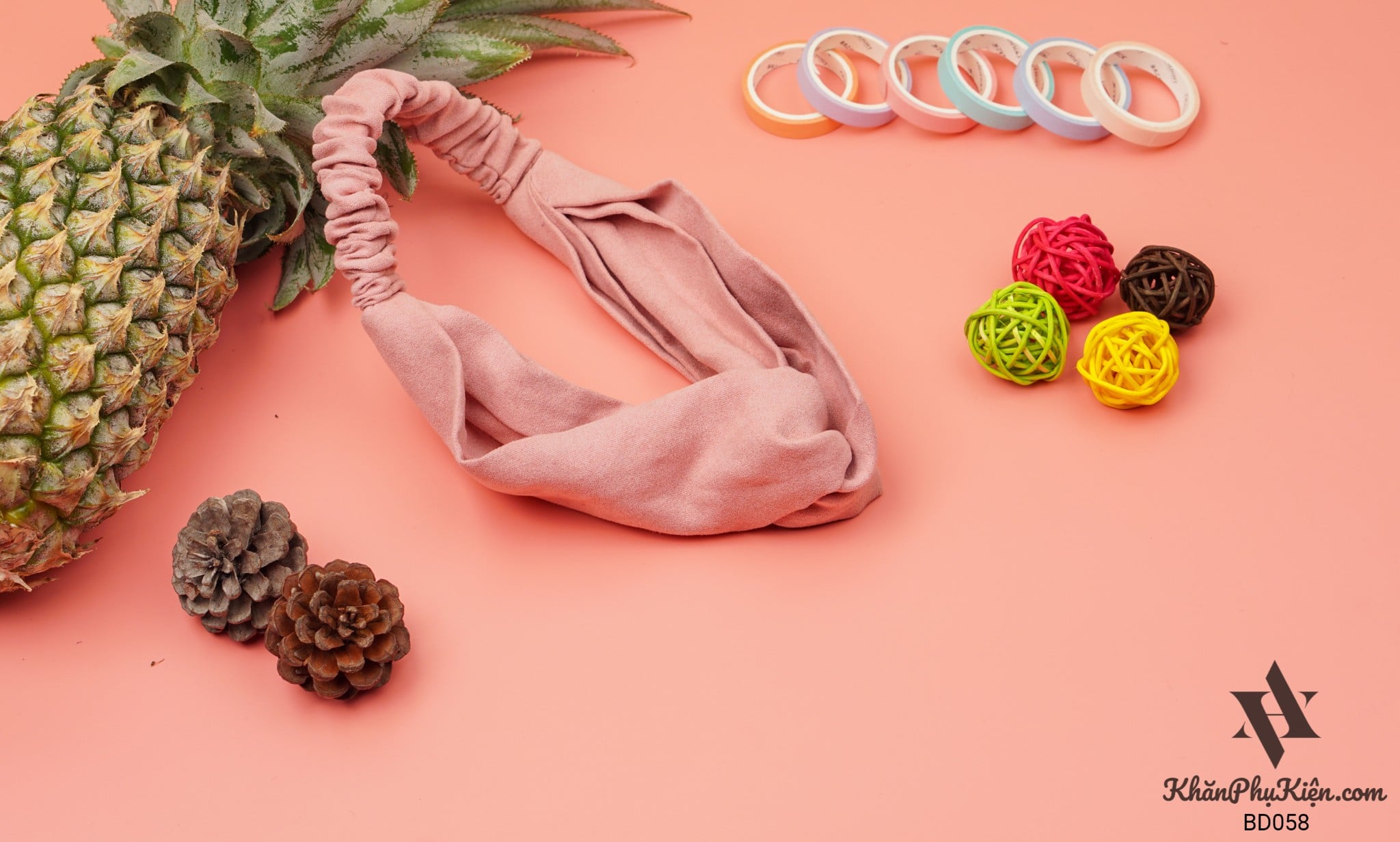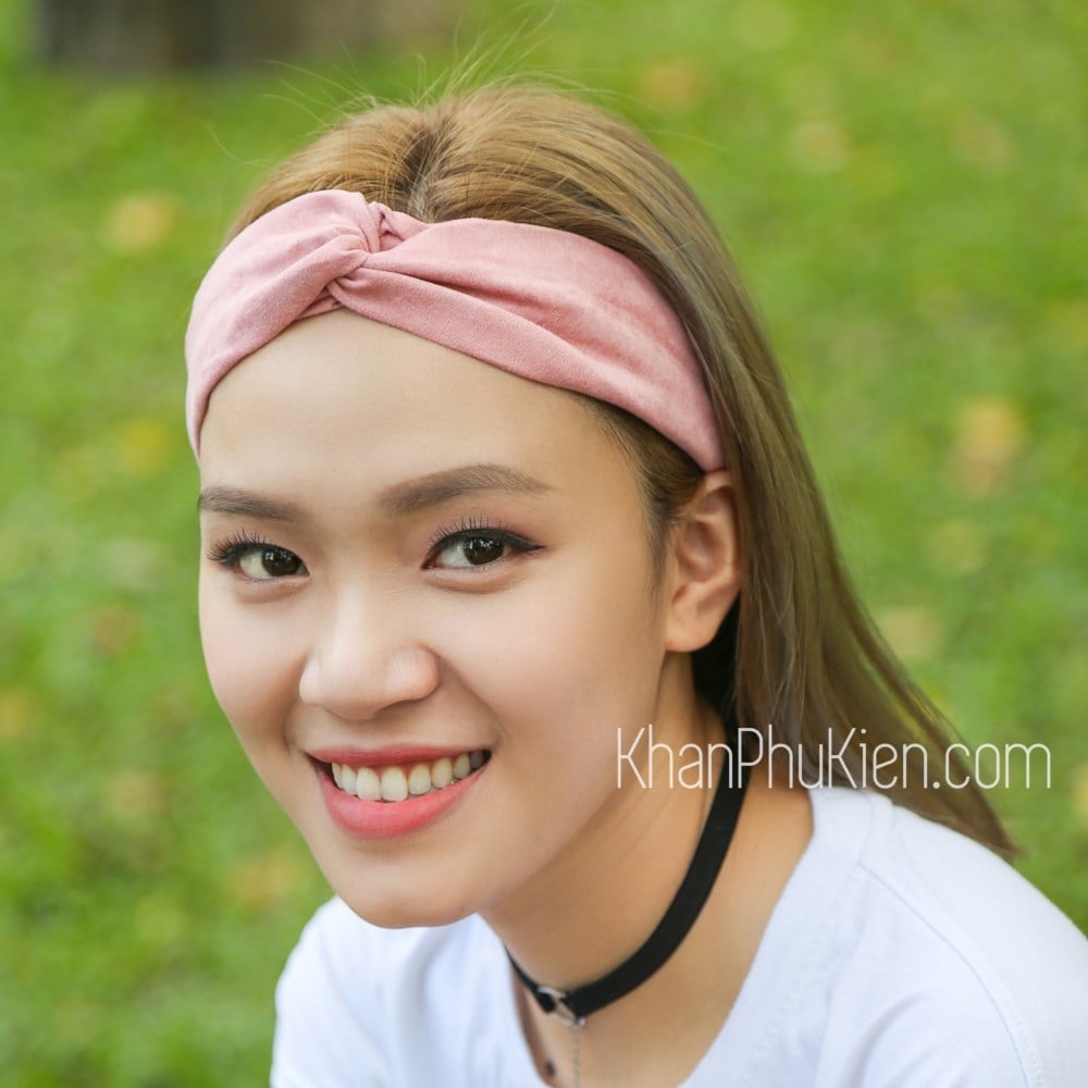 Băng Đô Vải Cài Tóc Nhung Màu Hồng - Mã BD058 - Khăn Phụ Kiện
