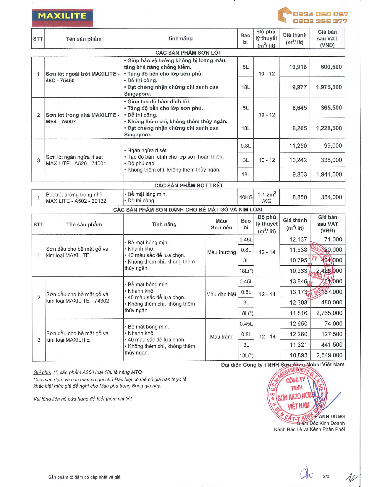 Bảng Báo Giá Sơn Maxilite Mới Nhất 2022