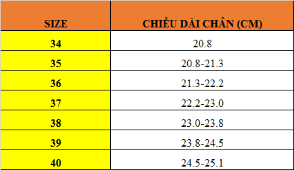 Bảng Size Giày Dép