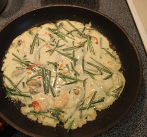 Phần nước tương. Pha 1 muỗng canh nước tương 15g , 1 muỗng canh nước, 1 mc đường, 1 muỗng cafê giấm 5ml, ít bột ớt, ít củ hành tây, ớt sừng và hành lá xắt nhuyễn. Bật mí cái này. P có lần chiên như vầy ăn với sà lách rau sống chấm nước mắm chua ngọt kiểu như ăn bánh xèo VN cũng ngon lắm. Sai lầm của mình cũng như của những người mới biết làm là bánh pha bột bị đặc, ít phần nhân nên chiên lên rất dày , và ngán. Bánh đạt yêu cầu khi vừa mỏng đủ liên kết các phần vật liệu với nhau. Phần xung quanh bánh thì giòn. Muốn bánh giòn ta cần chiên nhiều dầu môt chút và mỗi lần trở bánh nên chế thêm dầu ăn. Đây là bánh xèo hẹ. Bữa khác P sẽ giới thiệu món bánh xèo hành lá. P không khoái gì hành lá cho lắm nhưng đặc biệt chiên bánh xèo kiểu này thì lại thích chiên với hành lá hơn. Cọng hành ăn có vị rất ngọt. Nguyên vật liệu cũng giống giống như vầy nhưng cách chiên hơi khác, và có cho thêm trứng gà. CHUC CAC BAN THANH CONG! Share this: