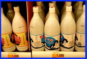 Mua ngoài siêu thị thì chai rượu gạo nhìn như thế này. Rượu không đựng trong chai keo mà trong chai nhựa.