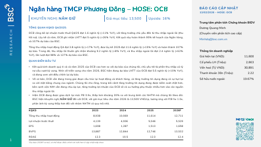 OCB: Khuyến nghị NẮM GIỮ với giá mục tiêu 13,500 đồng/cổ phiếuNguồn: BSC Tải về 13/02/2026 |