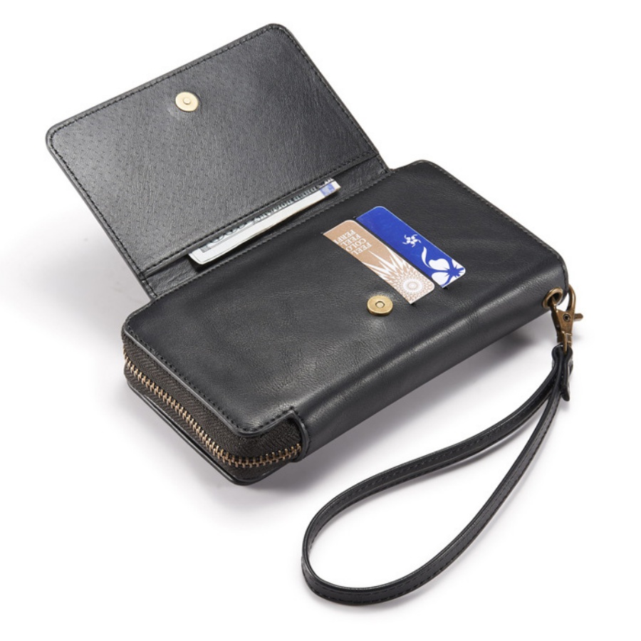 Bao da thiết kế dây khóa kéo chắc chắn không lo rơi rớt thẻ, tiền, điện thoại. Bên cạnh đó, bên trong bao da có nhiều khe nhỏ đựng các loại thẻ như: ATM, các giấy tờ quan trọng khác…. ôm lấy mặt trước của điện thoại.