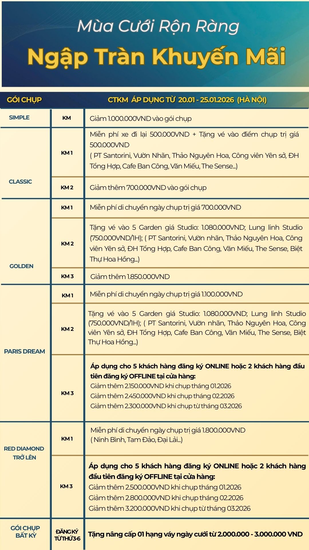 Báo giá chi tiết các gói chụp ảnh cưới Hà Nội