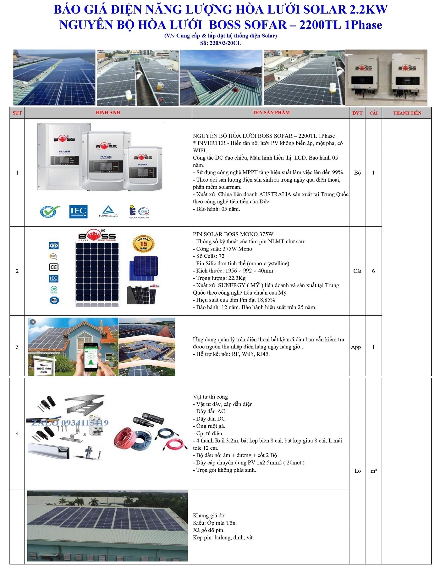 - Trên đây là báo giá cung cấp và thi công hệ thống điện năng lượng mặt trời ( công suất 2.2kwp) sau khi trao đổi