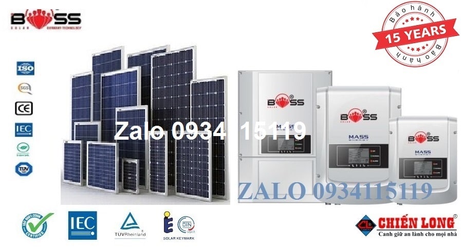 - Tấm pin Solar panel Boss, được sản xuất bởi công ty Solar Synergy Trung Quốc liên doanh với Mỹ ( USA). Sản phẩm được sản xuất theo tiêu chuẩn Châu âu ( EU) có chứng nhận đầy đủ khi khách hàng mua hàng.
