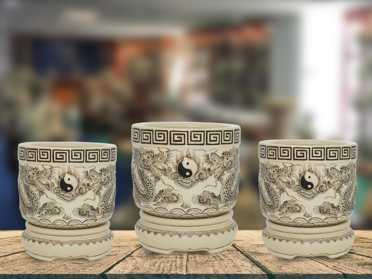 Gốm Chu Đậu trân trọng giới bộ bát hương cao cấp gốm Chu Đậu hoạ tiết rồng đắp nổi từ làng nghề truyền thống Chu đậu nổi tiếng của Việt Nam đặc biệt phù hợp trong không gian thờ cúng mang đậm màu sắc văn hóa truyền thống Việt Nam