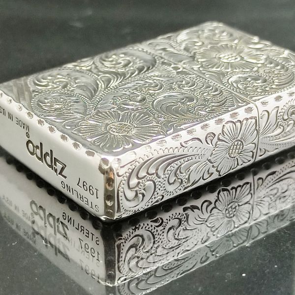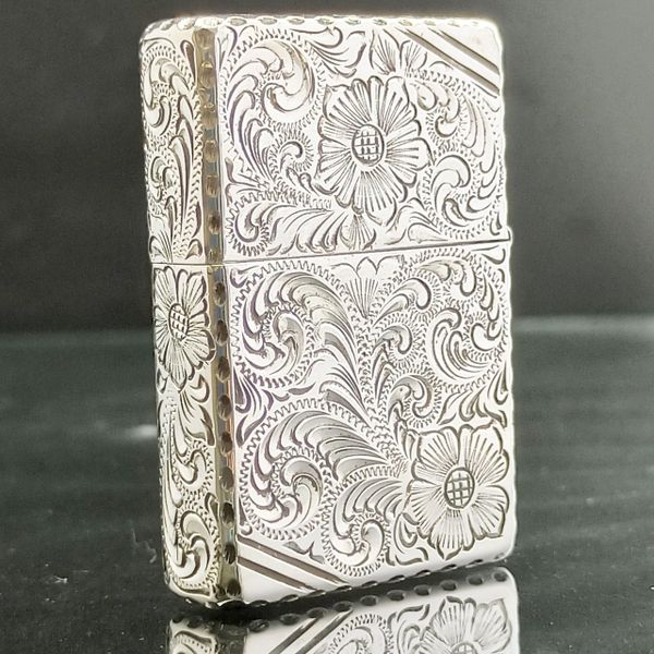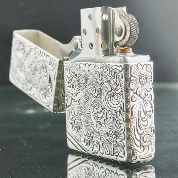 Bật Lửa Zippo Bạc đúc Nguyên Khối Sterling Khắc Thủ Công Sủi Tay Hoa ...