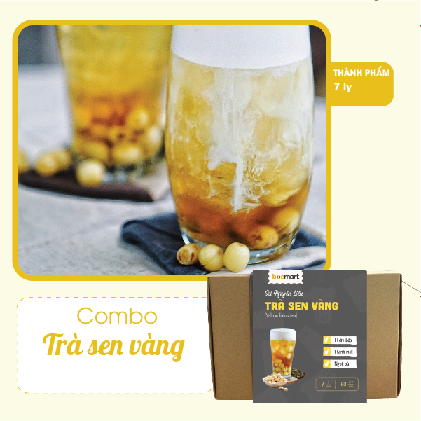 Hiện nay Beemamrt đã có combo trà sen vàng gồm đầy đủ nguyên liệu, vô cùng tiện lợi. Bạn có thể tham khảo TẠI ĐÂY nhé!