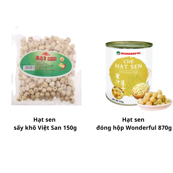 Tuy nhiên nếu không có quá nhiều thời gian bạn cũng có thể tham khảo hạt sen đóng hộp tiện lợi. Hạt sen chế biến của Wonderful rất tiện lợi với hạt sen thơm, mềm nhưng không nát quá, ăn rất ngon.